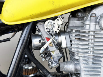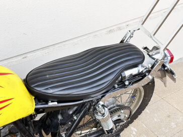 ●シンプルなドラッグパイプマフラー、乗り心地の良いシート、加速が激変するFCRキャブレターに疲れにくくカッコ良いライディングポジションになるステップキットなどで、乗って楽しいスタイルに仕上げています。