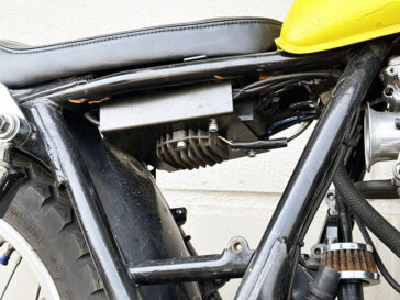 〇2%ERオリジナル、SR400/500用バッテリー搭載可能のシート下電装プレート