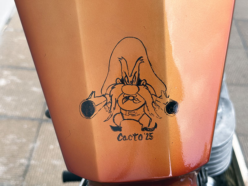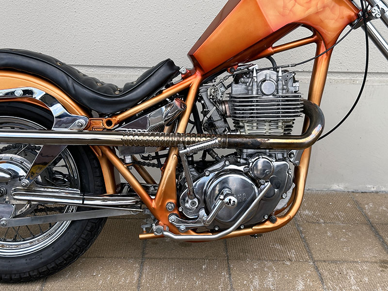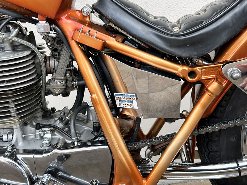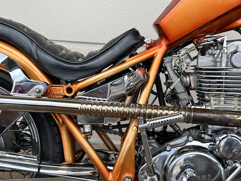 フレームのボンドワークや金属加工の細部のスムージングなどはSTUDIO FREE、ペイントは『BACON』。仲間内で仕上げた合作のようなカスタムです。