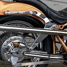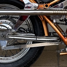 〇5cm延長したスイングアームに2本リブのモールディングを追加、クロームメッキ仕上げです。