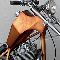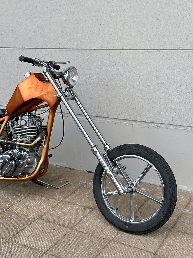カスタムカルチャーに精通した鈴(ピューター)製のオーナメントのアーティスト、『STUDIO FREE』からのオーダーで制作した70年代スタイルのチョッパーカスタム。