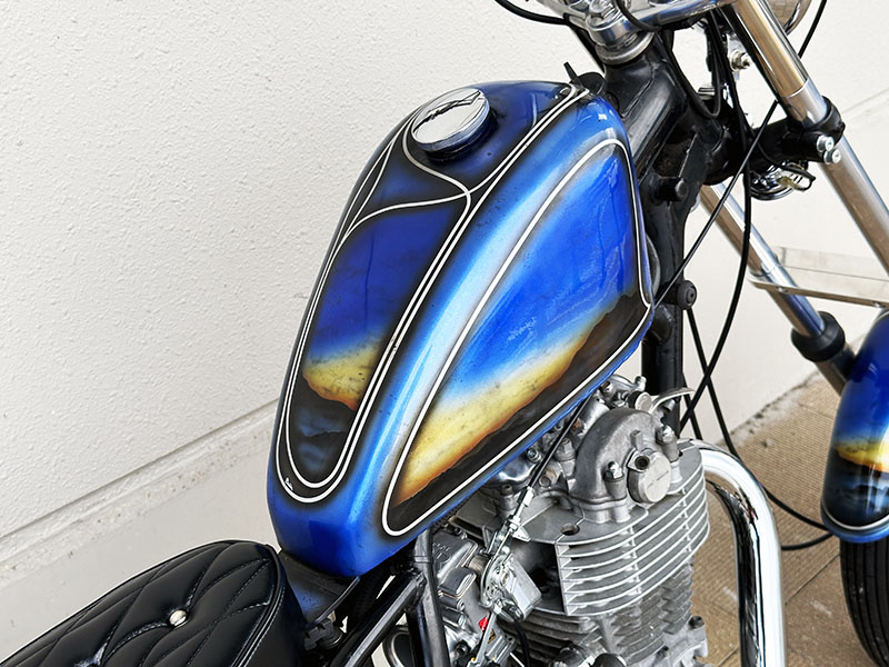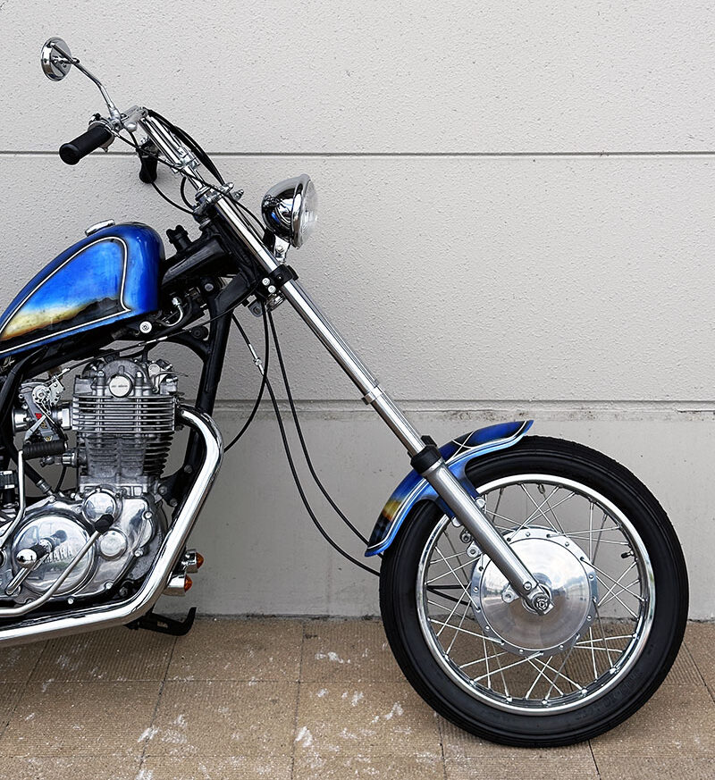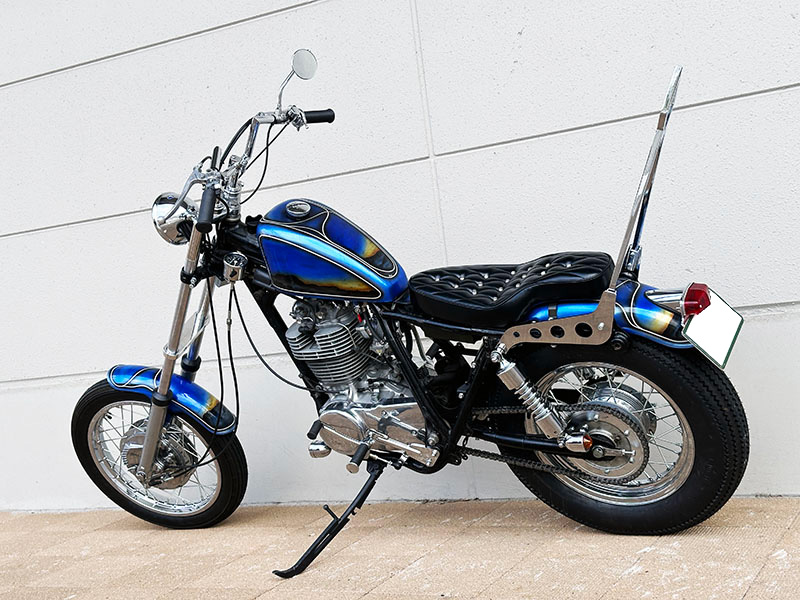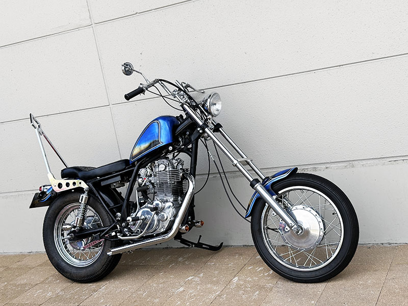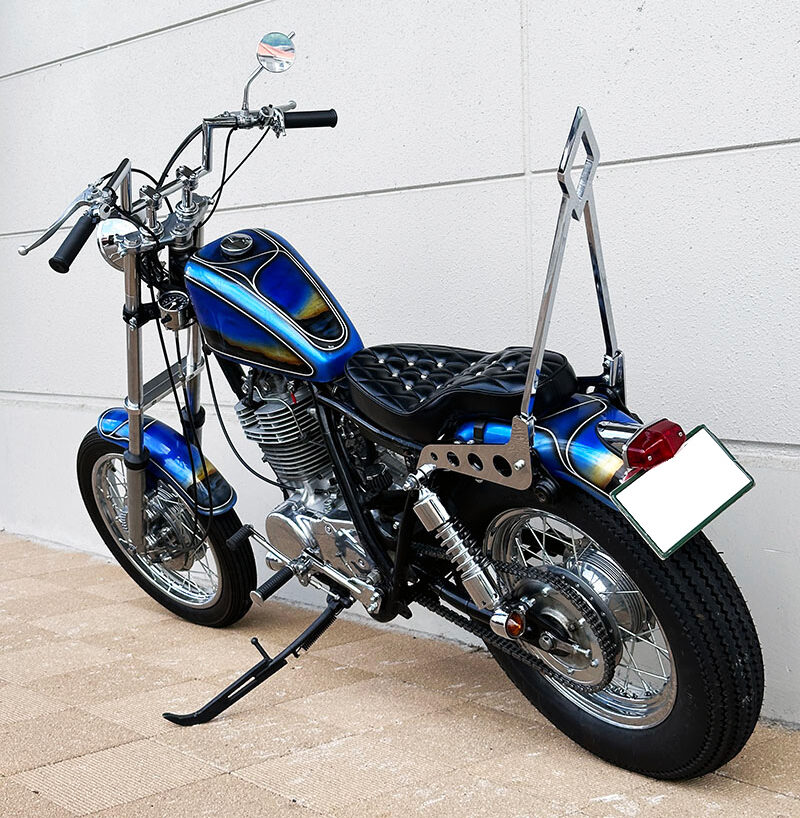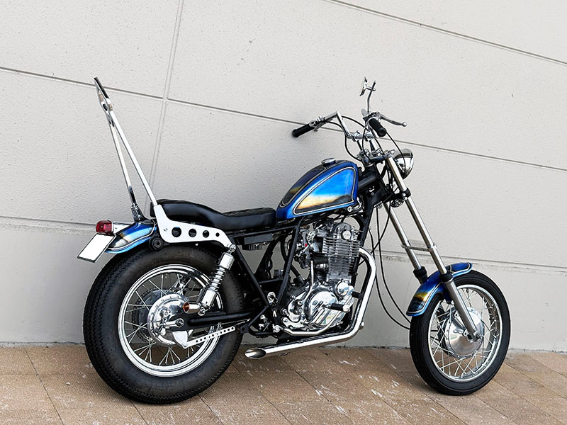 すべて2%ERオリジナルボルトオンパーツで制作させて頂いたSR400のチョッパーカスタム。