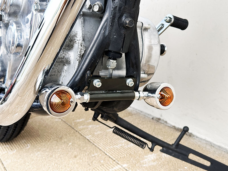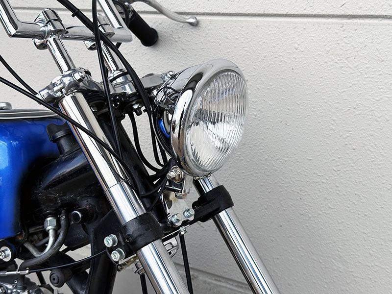〇程よい高さ、突き出し量でチョッパースタイルにも良く似合うヘッドライトステー。(セットはこち)