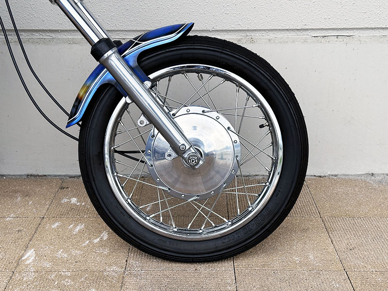 •30cmオーバーのロングフォーク。フロントホイールは純正18インチ。