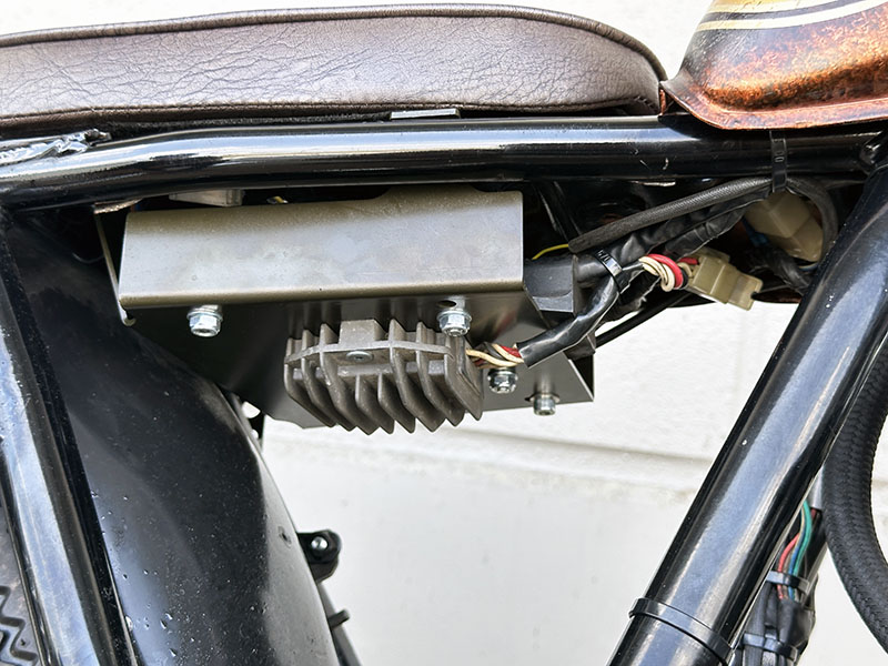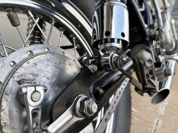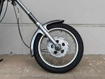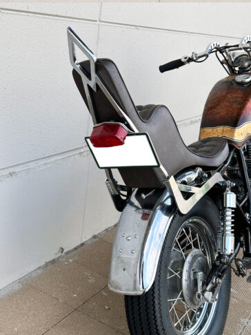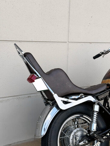 ●16インチ化とショートショックへの変更でリアローダウン。ロングシッシーバープレートは車体をさらに大きく見せ、ゆったり乗っていただけるポジションの確保にも一役かっています。
