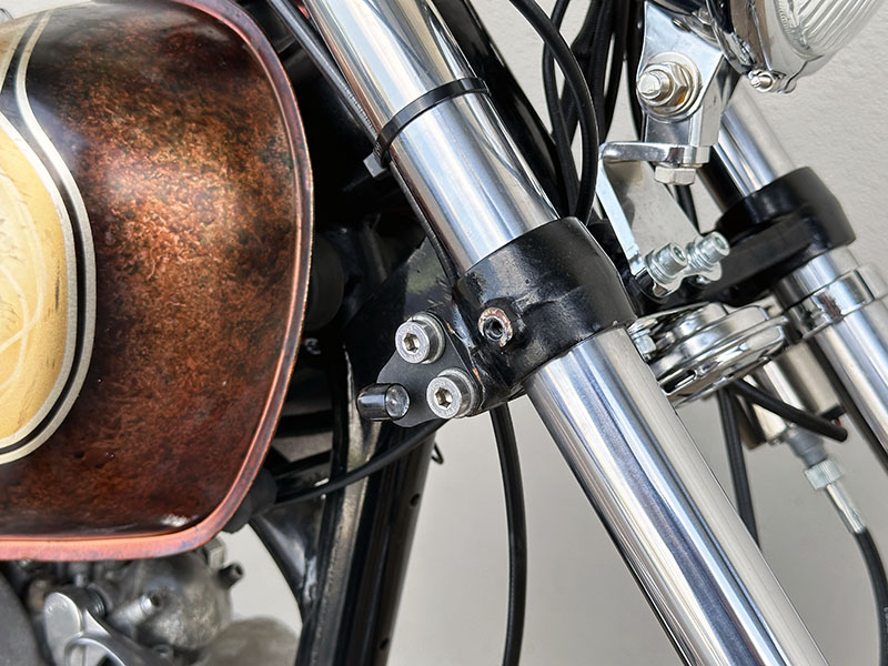 〇程よい高さ、突き出し量でチョッパースタイルにも良く似合うヘッドライトステー。(セットはこちら)