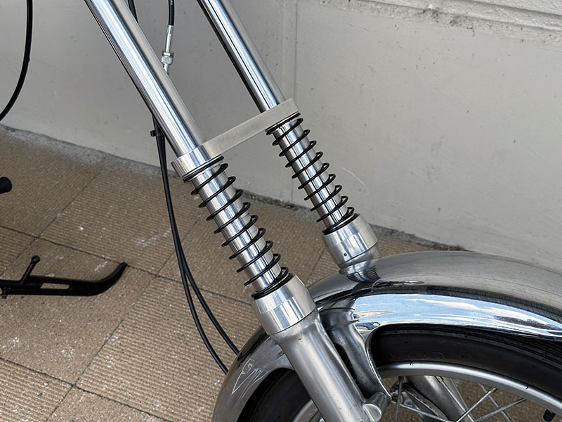 〇クラシカルな外づけスプリングキットで柔らかすぎるフォークの沈み込みをアシストします。