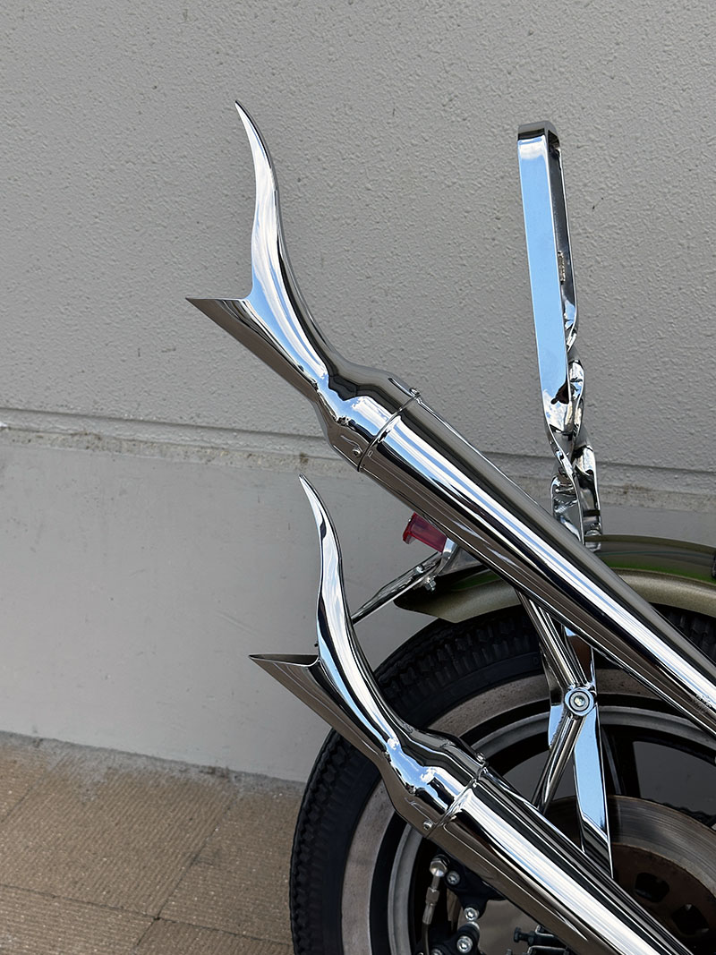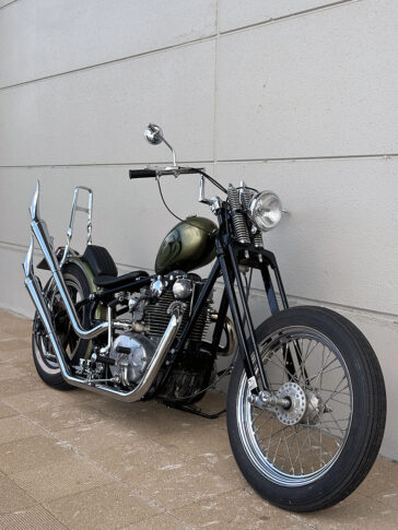 2%ER流のバランスでフレームやブレーキの構造、外装類やマフラーなどすべてワンオフ制作したチョッパーです。