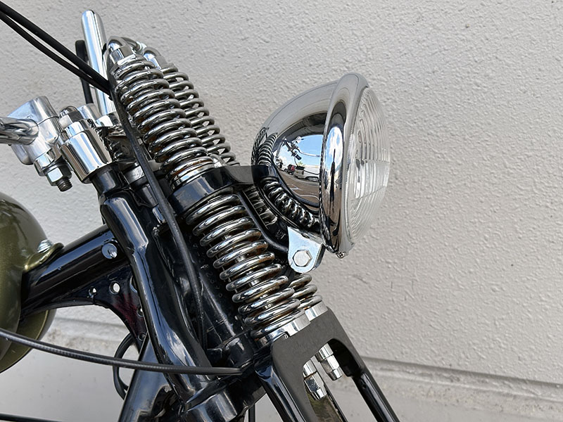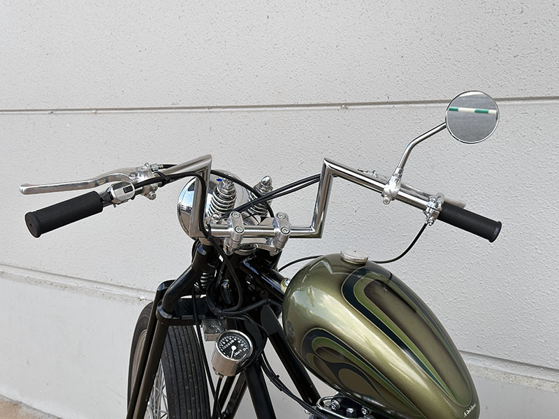 5.75インチのベーツライトにワンオフ制作したライザーベース、SR用を加工流用したハンドルポストに当社製STDロボットハンドルをセットしました。