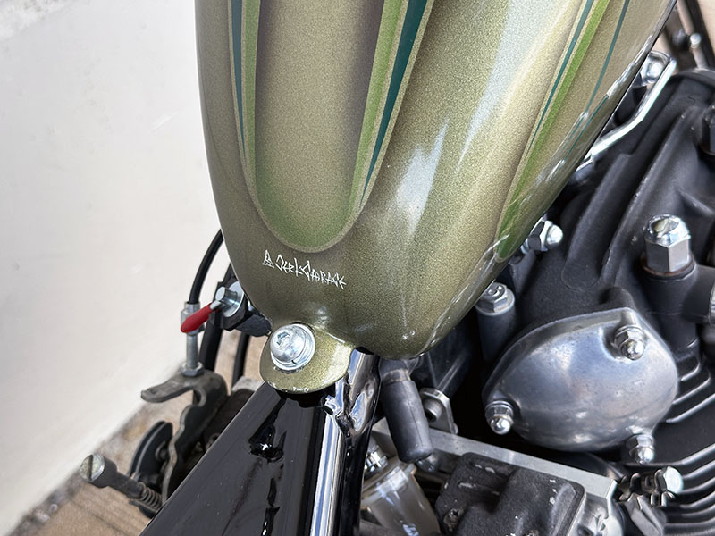 ガソリンタンクとリアフェンダーのペイントはオーナさま指定の『JERK GARAGE』にお願いしました。