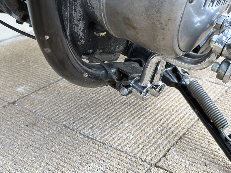 リアのブレンボキャリパーのレシオに合わせ操作しやすく制作したステップ周りやタンクやマフラーなどすべてワンオフ制作です。