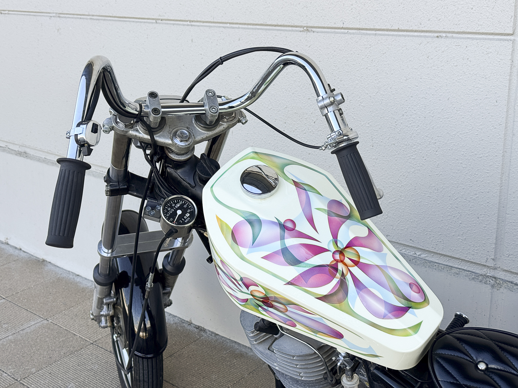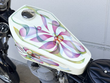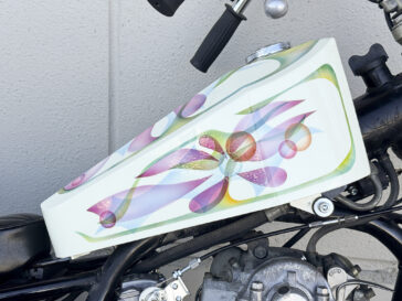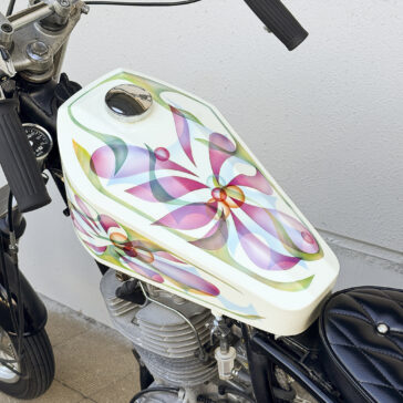 〇SRのフレームサイズに合わせたアメリカの棺桶(コフィン)デザインのガソリンタンク。