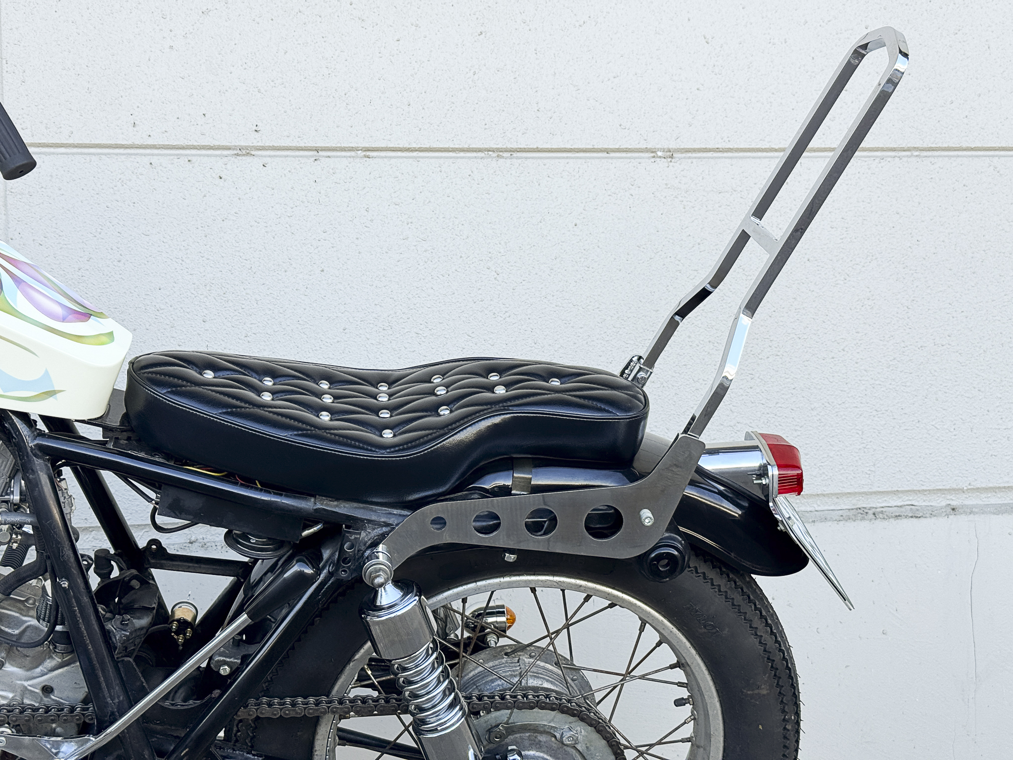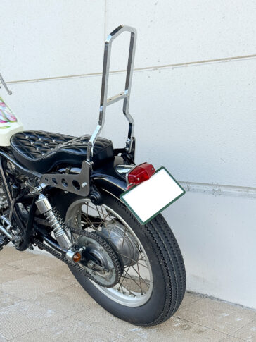 ◯雰囲気のよい輸入もののボディーながら日本規格ナンバーサイズでつかいやすいテールランプです。リアフェンダーに穴あけ加工が必要です。