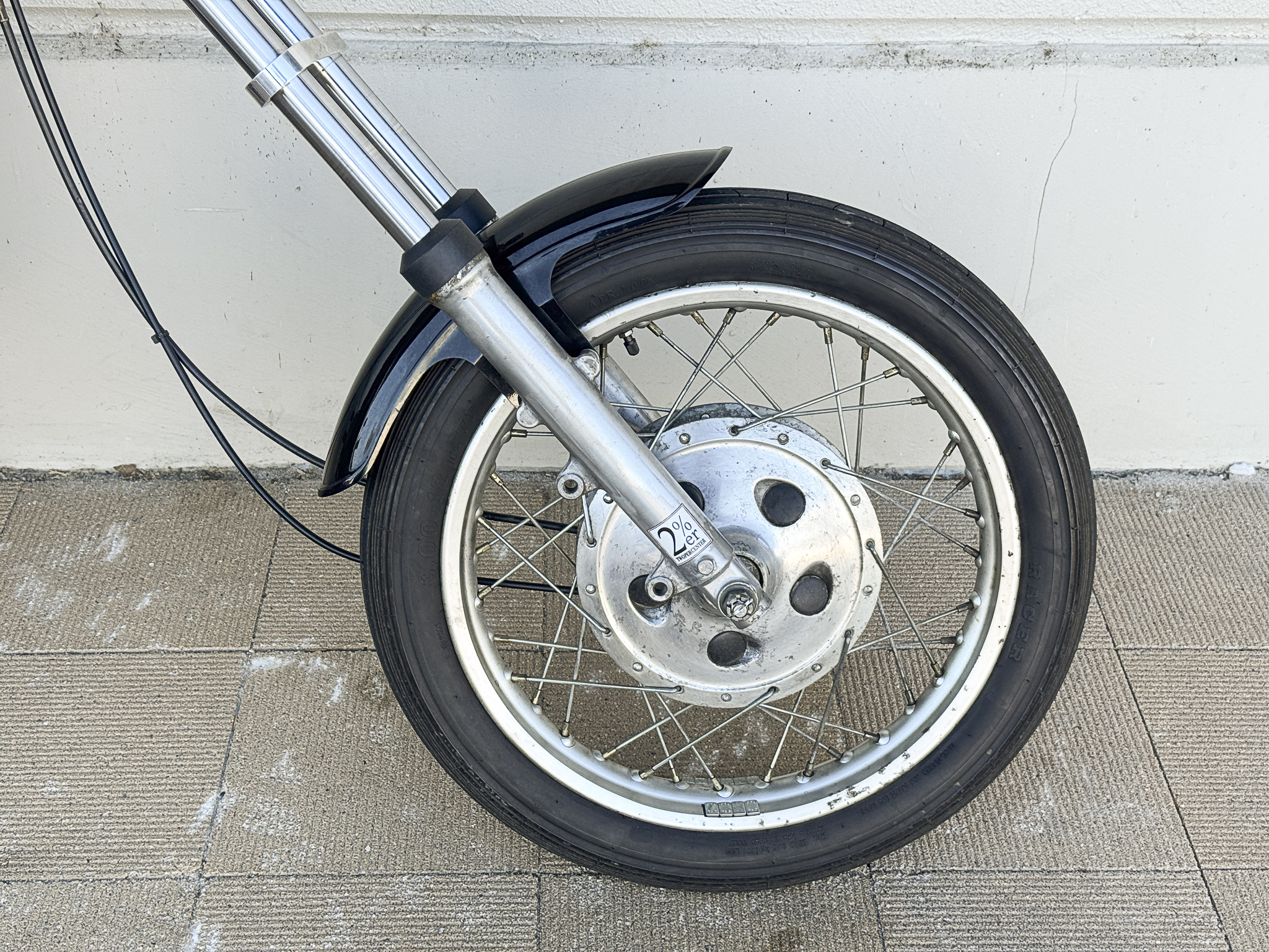 〇縦ミゾデザインのストリートタイヤ。ロングフォーク化時など重くなりがちなハンドリングを軽く補正します。小径で丸みのある3.00サイズです。