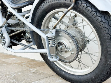 〇CDI以外のすべての電装類をエンジンのクランクケース後部に集約しています。車体の左右どちらからでも両手でアクセスでき整備性良好、車検の際スイングアーム仕様に戻しても組み替える必要は一切ありません。