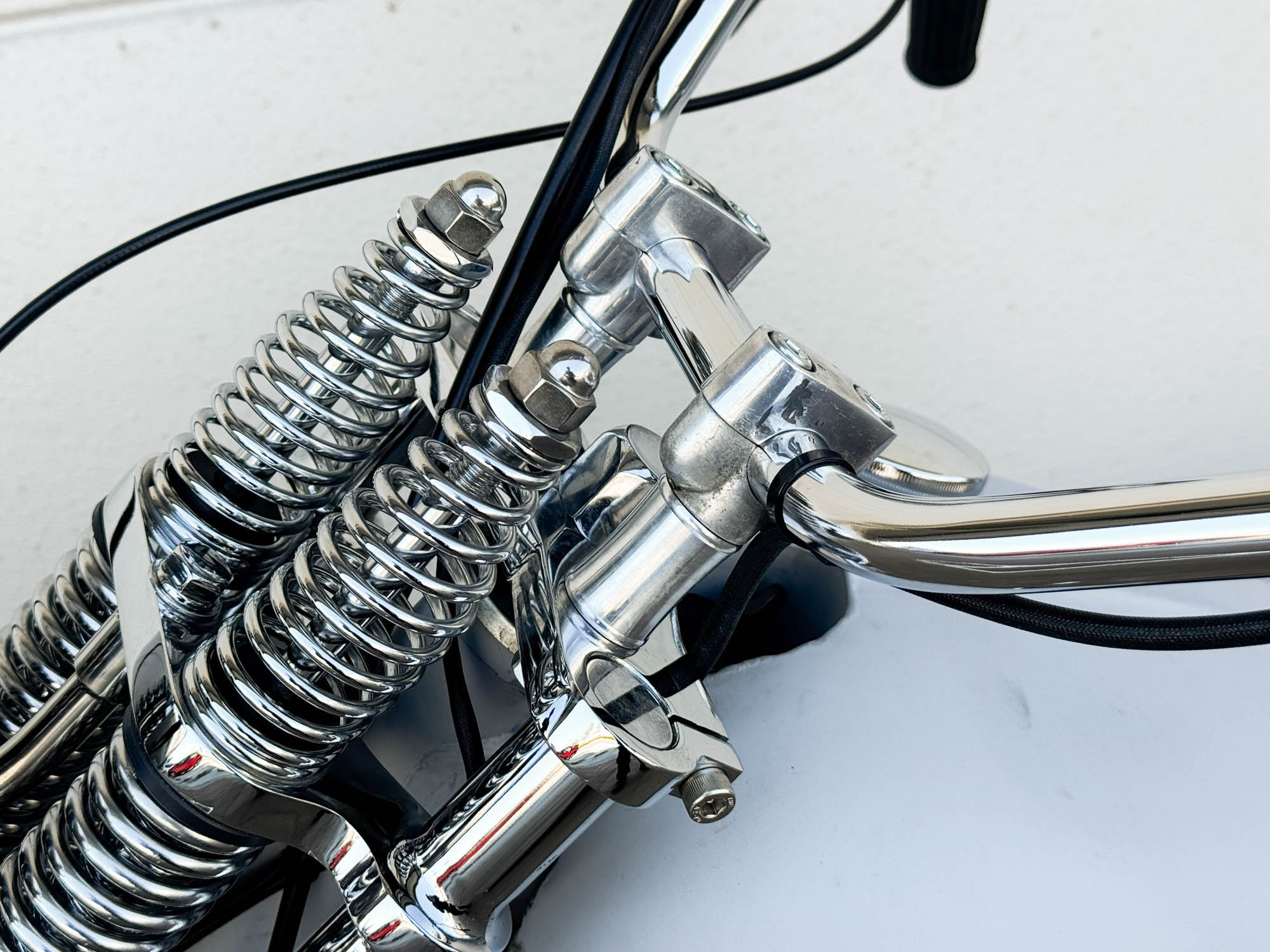 〇ギャップの拾い方やブレーキング時の沈み方など滑らかな動き、ボルトオンでの取り付けやすさにこだわったチョッパー用スプリンガーフォーク。