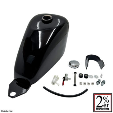 〇A bolt-on Sportster tank with internal coating/paint. With its inconspicuous mount and pre-painted finish, you can switch it out on the same day.